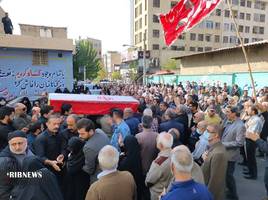پیکر شهید مصطفی بابایی از مقابل مسجد جامع فاز ۴ مهرشهر تشییع شد.