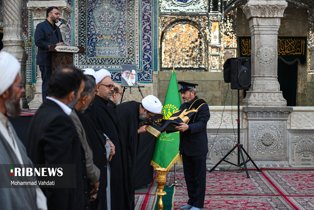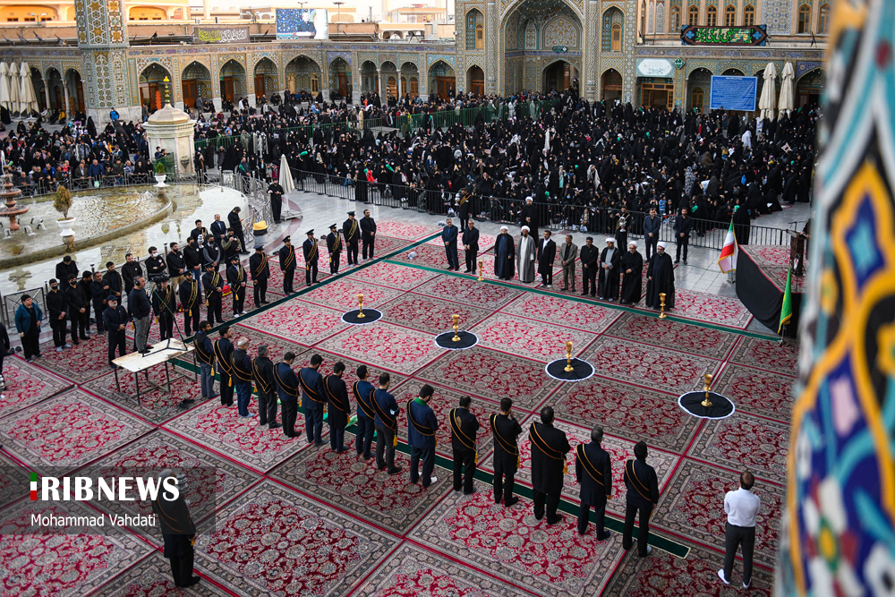 آیین تعویض پرچم گنبد مطهر حرم بانوی کرامت و برافراشتن پرچم عزا بر فراز گنبد حرم به مناسبت سالروز رحلت شهادتگونه کریمه اهلبیت (س) عصر امروز در صحن امام رضا (ع) حرم مطهر حضرت معصومه (س) با حضور دلدادگان به اهلبیت عصمت و طهارت برگزار شد.