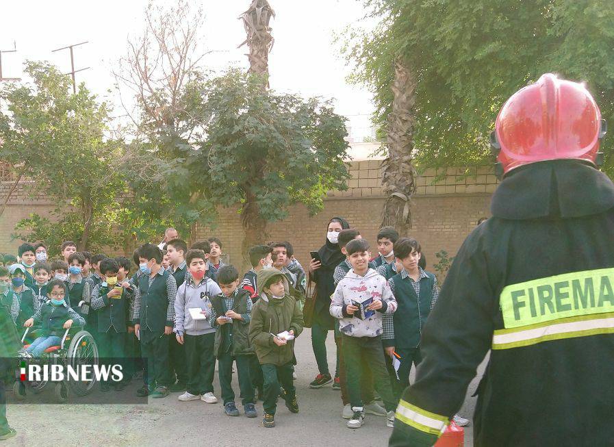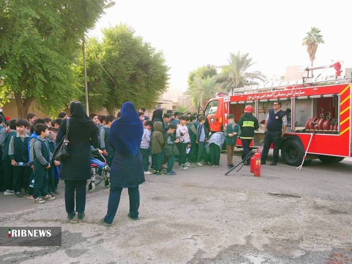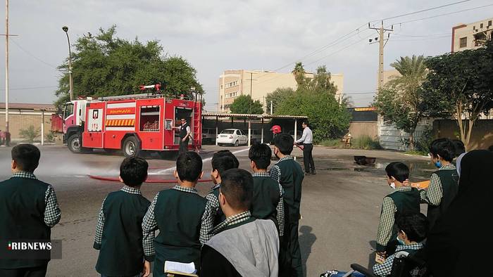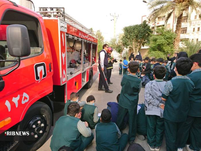 آتش نشانان برای دانش آموزان توضیحاتی در مورد شغل آتش نشانی ارائه دادند و آنان را با ابزار و تجهیزات آتش نشانی، لباس آتش نشانان و چگونگی تماس با شماره تلفن ۱۲۵ در هنگام حوادث آشنا کردند.
