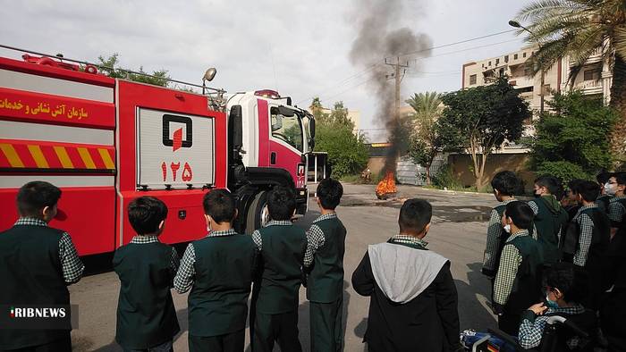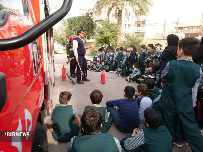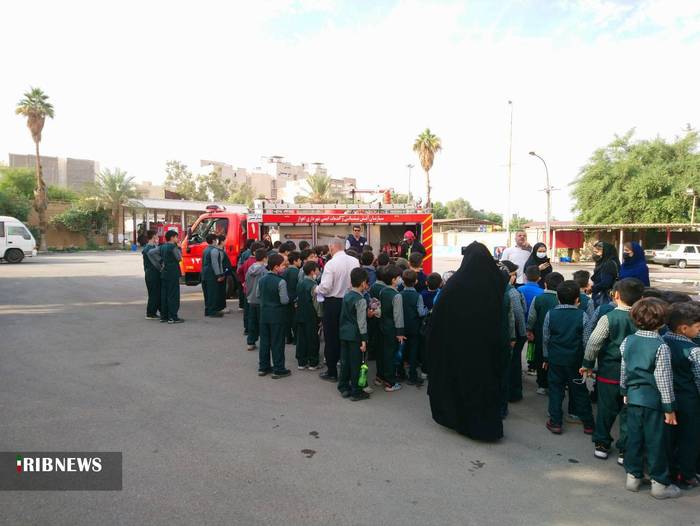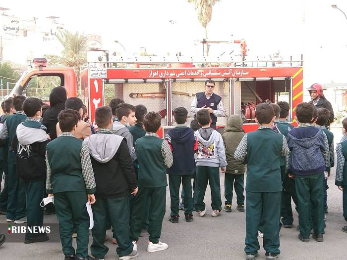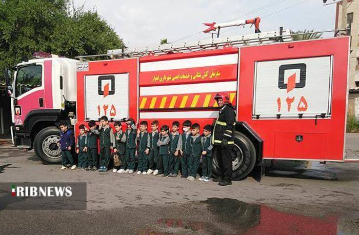 بازدید دانش آموزان دبستان علم پویا از ایستگاه آتش نشانی گلستان اهواز