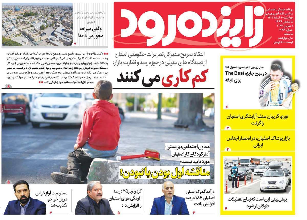 تیتر درشت صفحه نخست روزنامههای امروز چهارشنبه ۱۰ اسفند ۱۴۰۱ را اینجا ببینید.