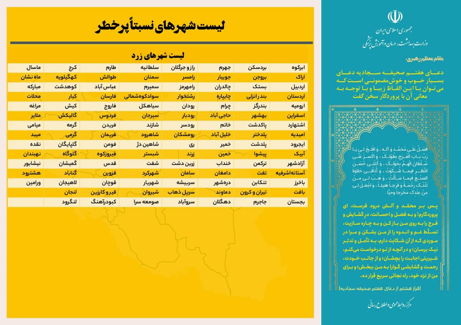 دکتر گل فیروزی ادامه داد: براساس آخرین رنگ بندی رسمی، در استان گلستان اکنون وضعیت در شهرستانهای مراوه تپه، کلاله، گنبدکاووس، مینودشت، آق قلا، رامیان، علی آبادکتول، گرگان و کردکوی، آبی است. گمیشان، ترکمن، بندرگز، آزادشهر و گالیکش نیز در وضعیت نسبتاً پرخطر و زرد قرار دارند.