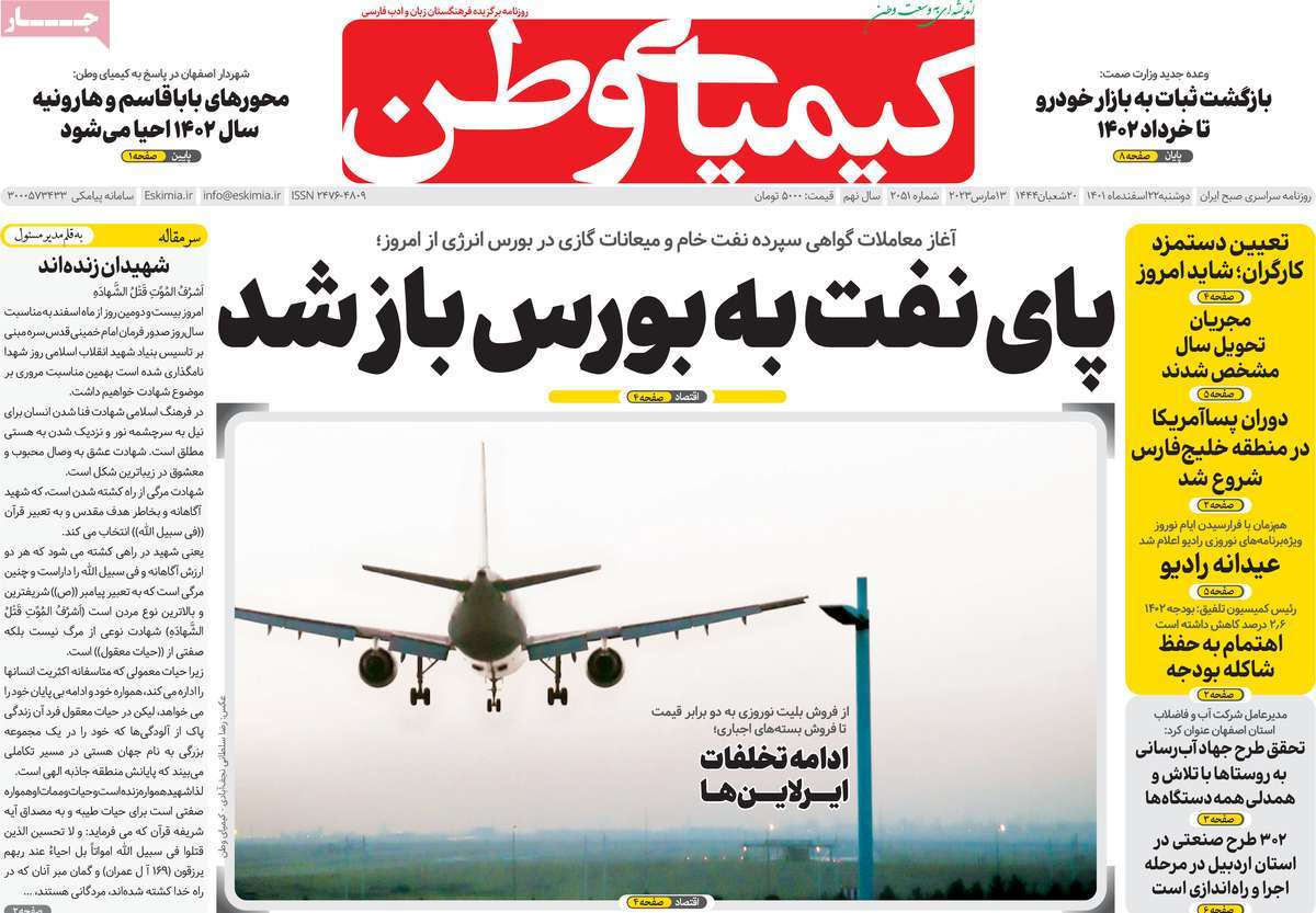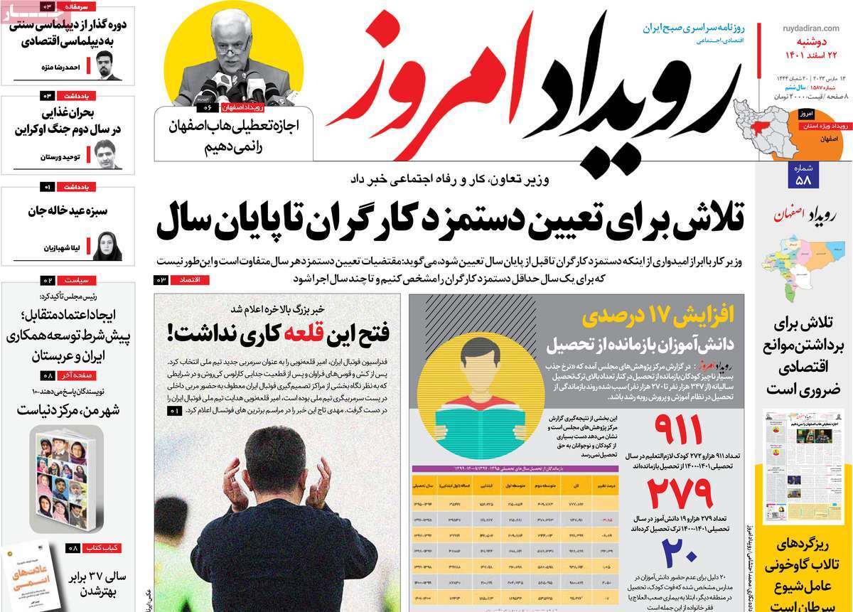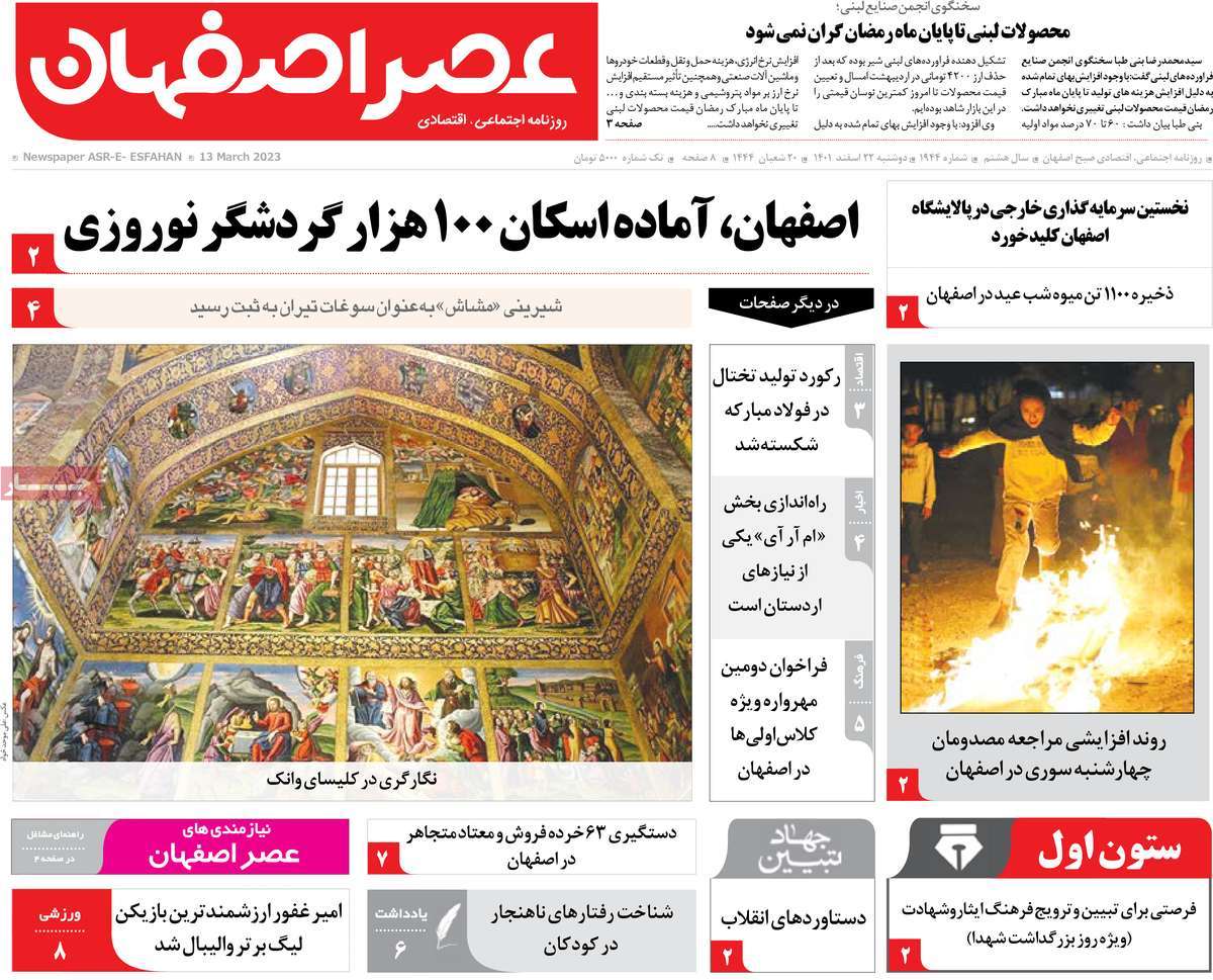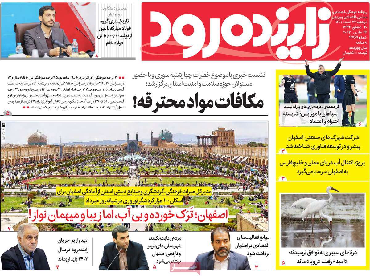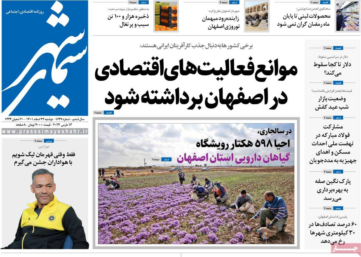 عناوین روزنامه‌های دوشنبه ۲۲ اسفند ۱۴۰۱ اصفهان