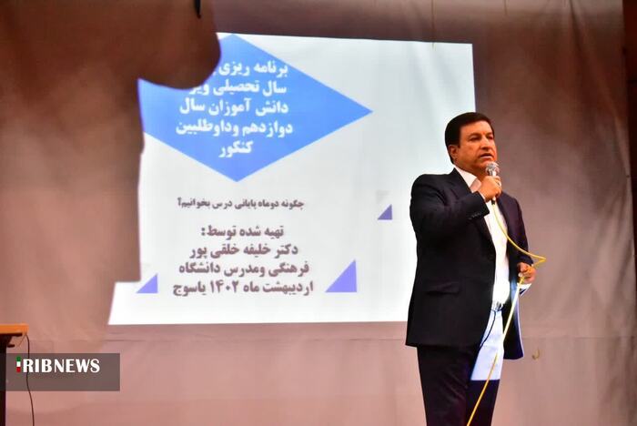 وی در جلسه توجیهی اولیا و دانش آموزان پایه دوازدهم اداره آموزش وپرورش شهرستان بویراحمد افزود: در سال تحصیلی جاری به دلیل تاثیر قطعی ۴۰ درصدی معدل در کنکور سراسری و الکترونیکی شدن حوزه‌های امتحانات و شخصی سازی پاسخنامه دانش آموزان در برگزاری امتحانات نهایی خردادماه شرایط نسبت به سال‌های گذشته متفاوت است.