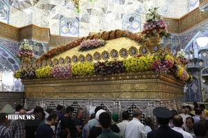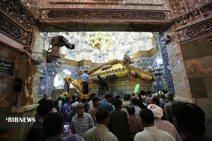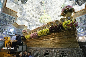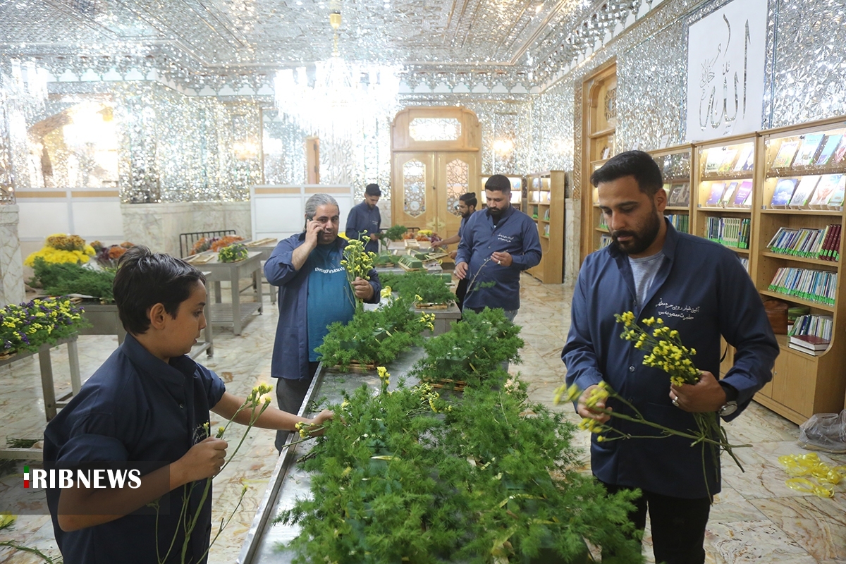 خادمان حرم حضرت معصومه سلام الله علیها به مناسبت میلاد امام رضا علیهالسلام، امروز مضجع شریف حرم مطهر را گلآرایی کردند.