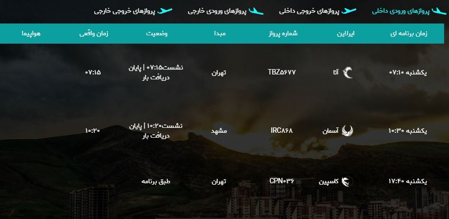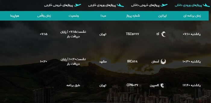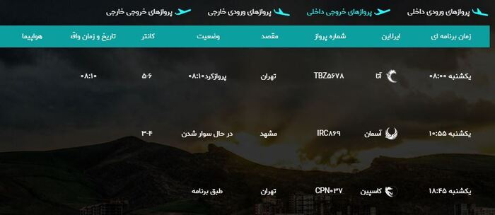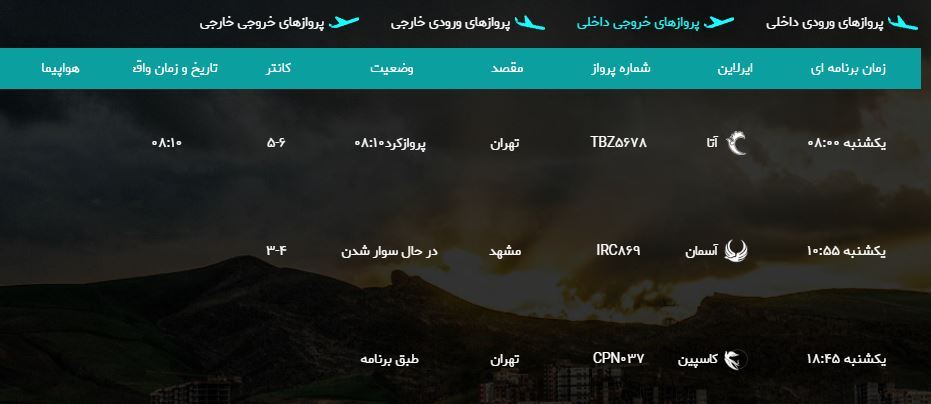 به گزارش خبرگزاری صداوسیمای استان آذربایجان غربی، برنامه پروازهای امروز فرودگاه بین المللی شهید باکری ارومیه به شرح زیر است: