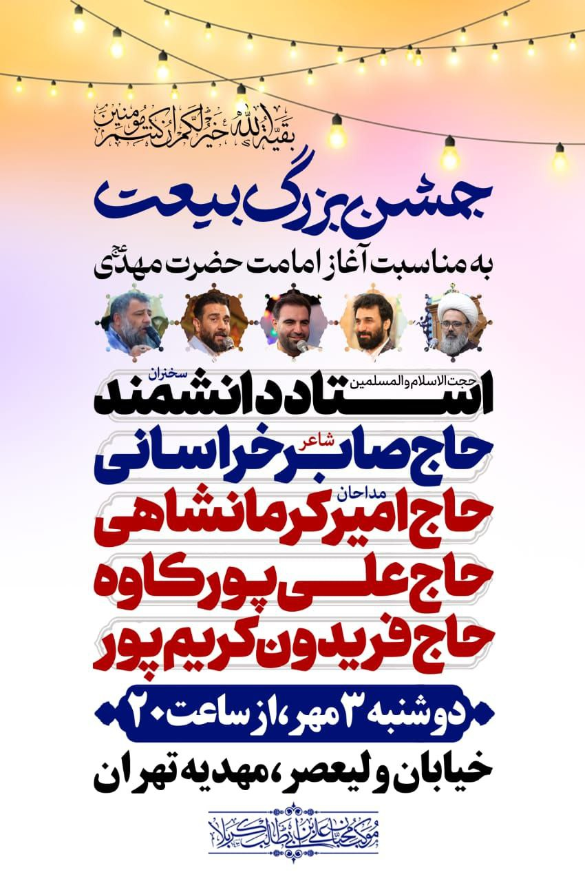 مراسم عید بیعت سوم مهر ماه همزمان با سالروز آغاز امامت امام زمان (عج) در تهران و سراسر کشور برگزار می‌شود.