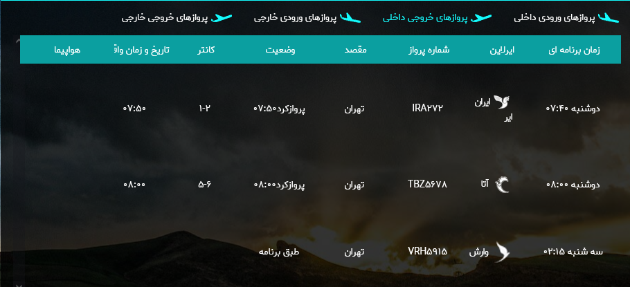 به گزارش خبرگزاری صداوسیمای استان آذربایجان غربی،  برنامه پرواز‌های امروز فرودگاه بین المللی شهید باکری ارومیه به شرح زیر است: