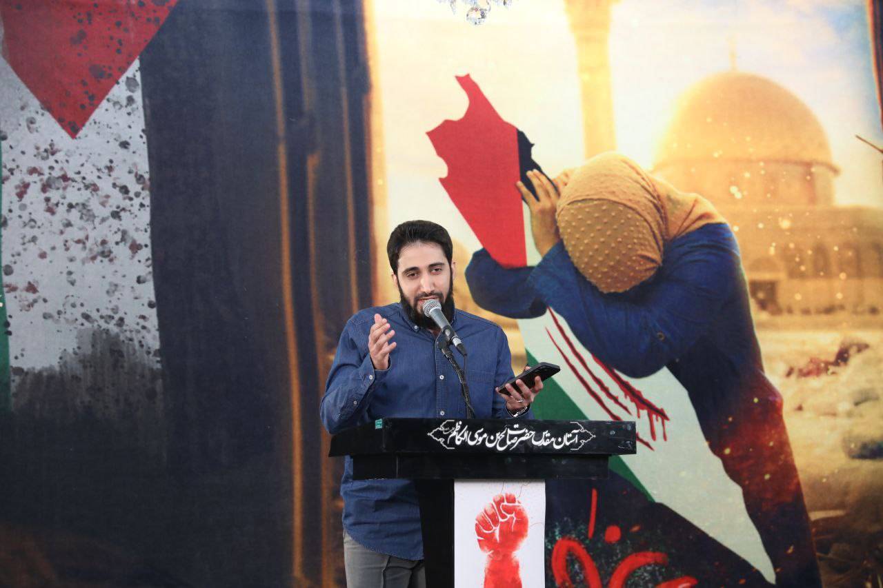 در بخش دیگری از این مراسم حمید رمی شاعر آئینی نیز در مظلومیت مردم فلسطین نغمهسرایی کرد. او دو اثر با موضوع فلسطین داشت که در قالب زمینه و حماسه خواند. سپس احمد بابایی شاعر آئینی کشورمان، شعرخوانی کرد که جدای از شعرخوانی برای مردم غزه، شعری هم با موضوع روضه برای حضرت ابوالفضل (ع) و حضرت علی اصغر (ع) را سرود.
