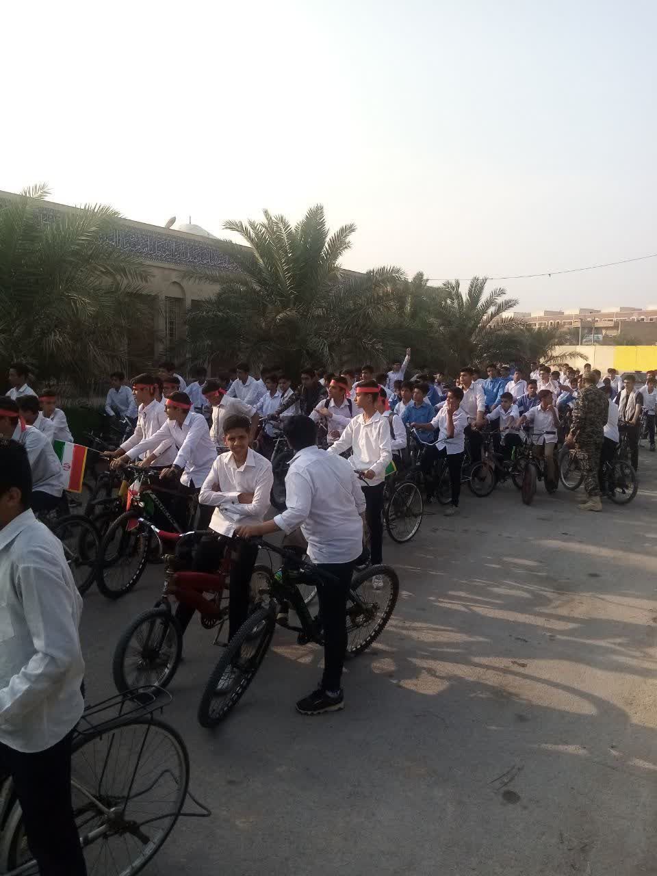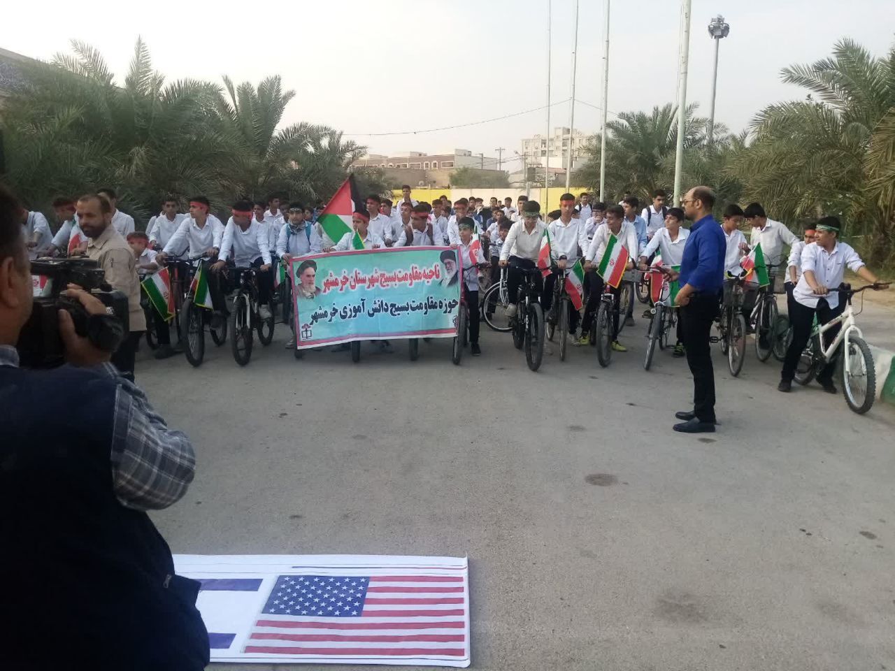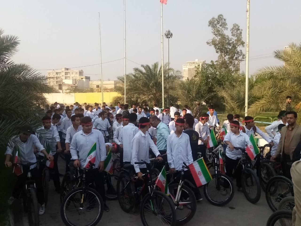 سیصد دانش آموزان خرمشهری هم با طی مسافت حوزه علمیه تا مزار شهدا با دوچرخه و گرامیداشت هفته بسیج دانش آموزی از کودکان مظلوم غزه