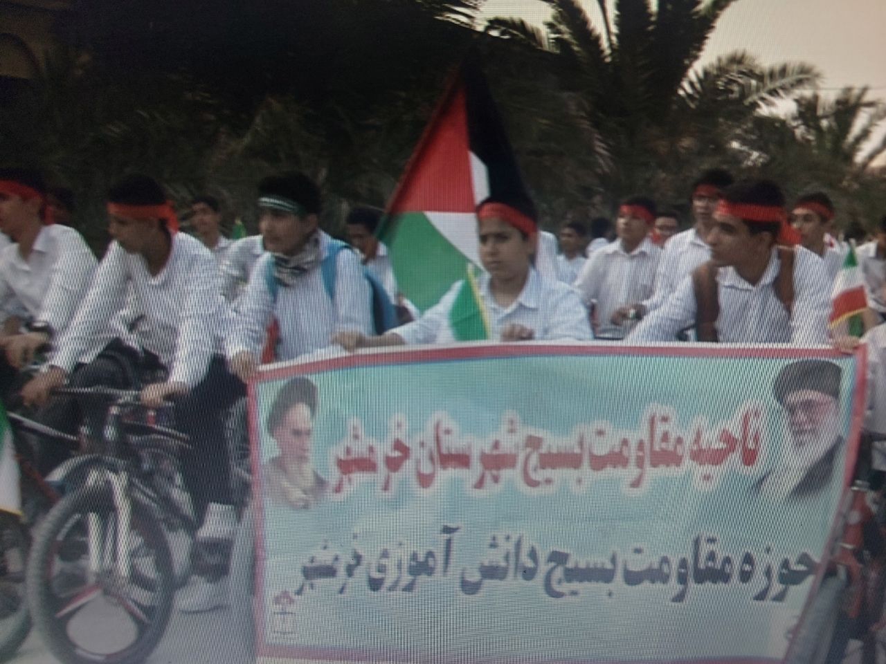 دانش آموزان آبادانی در حمایت از مردم مظلوم غزه و اهتزاز پرچم فلسطین حمایت خود را از مقاومت مردم این خطه به گوش جهانیان رساندند.