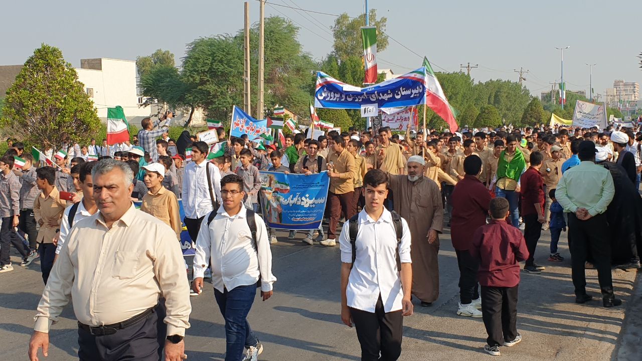 دانش آموزان آبادانی همزمان با روز ملی مبارزه با استکبار جهانی حمایت خود را از کودکان مظلوم فلسطین اعلام کردند.