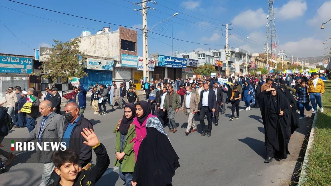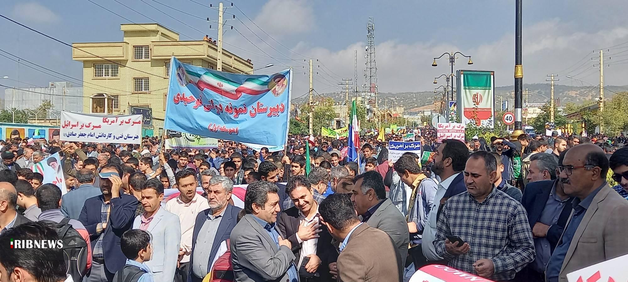 اهالی روستاهای استان کهگیلویه و بویراحمد هم در این روز ملی به میدان آمدند و با شعارهای ضد استکباری جنایت های رژیم صهیونیستی را محکوم کردند و فریادهای مرگ بر اسرائیل و آمریکا سردادند.