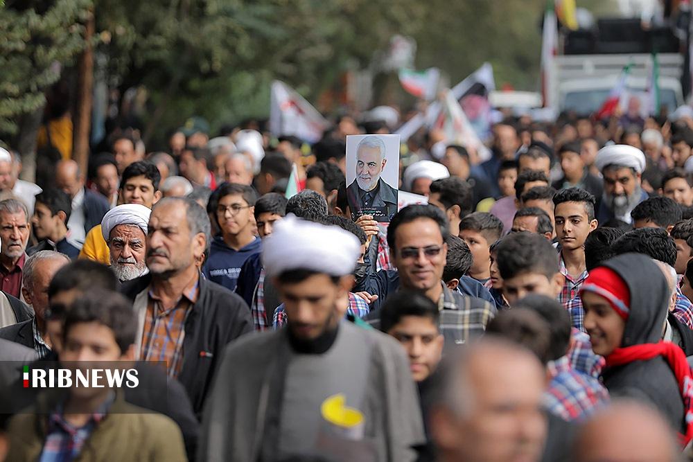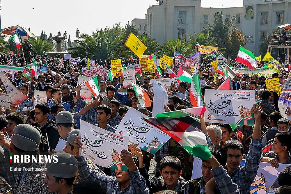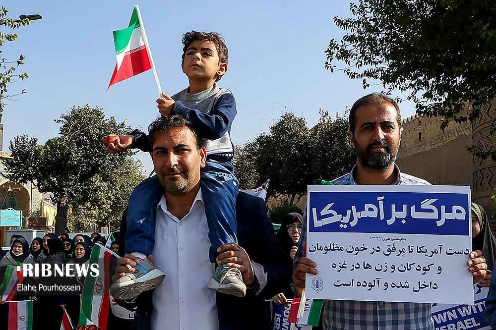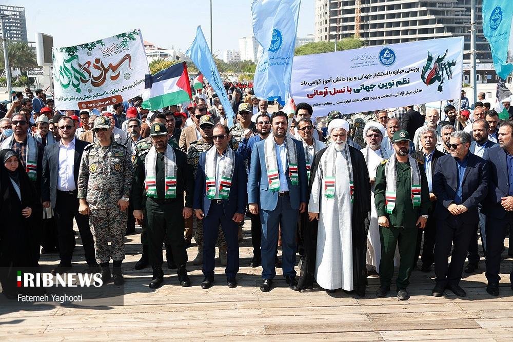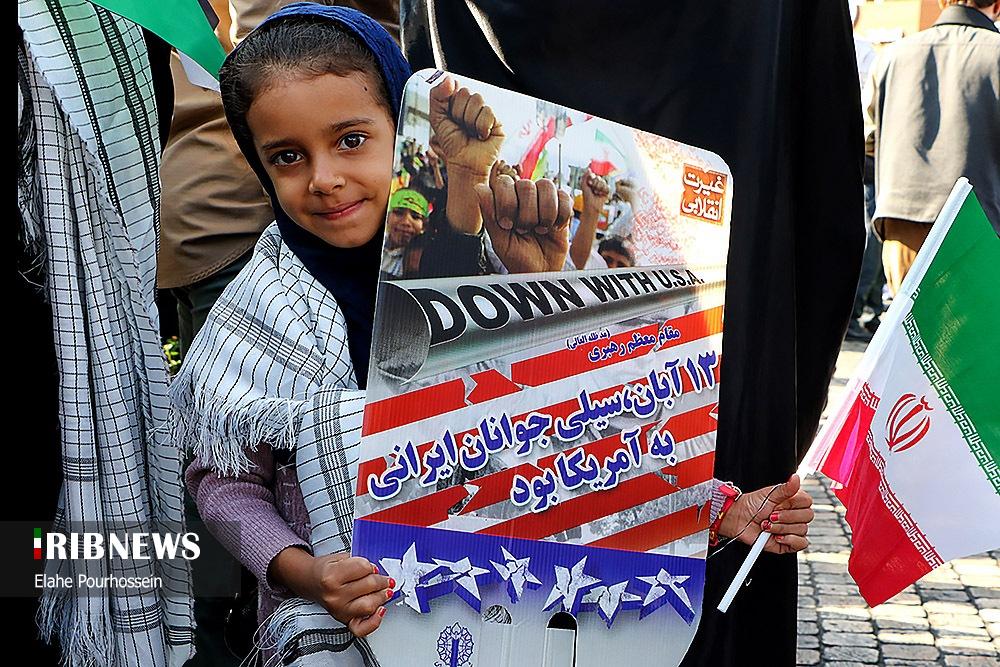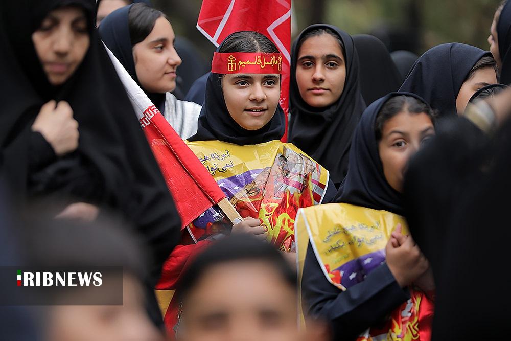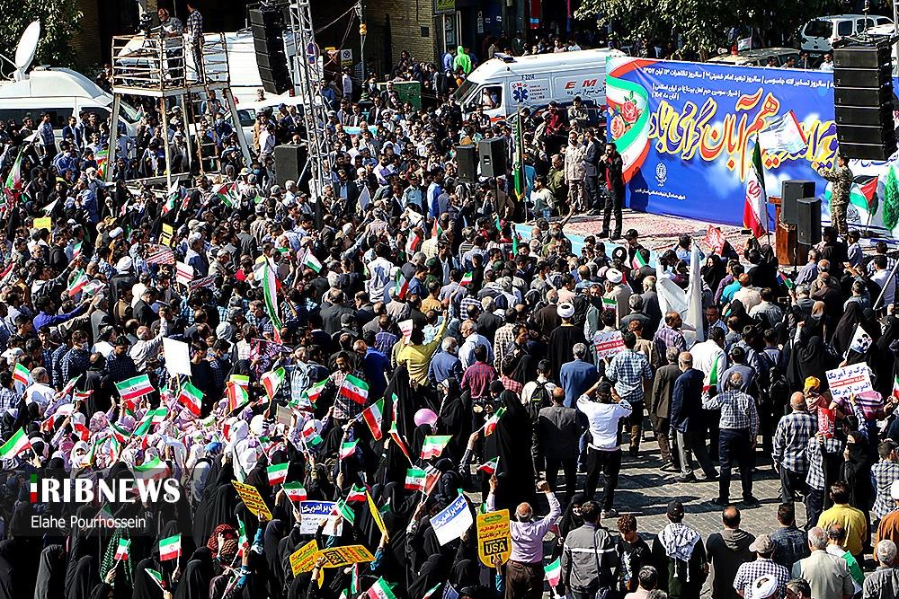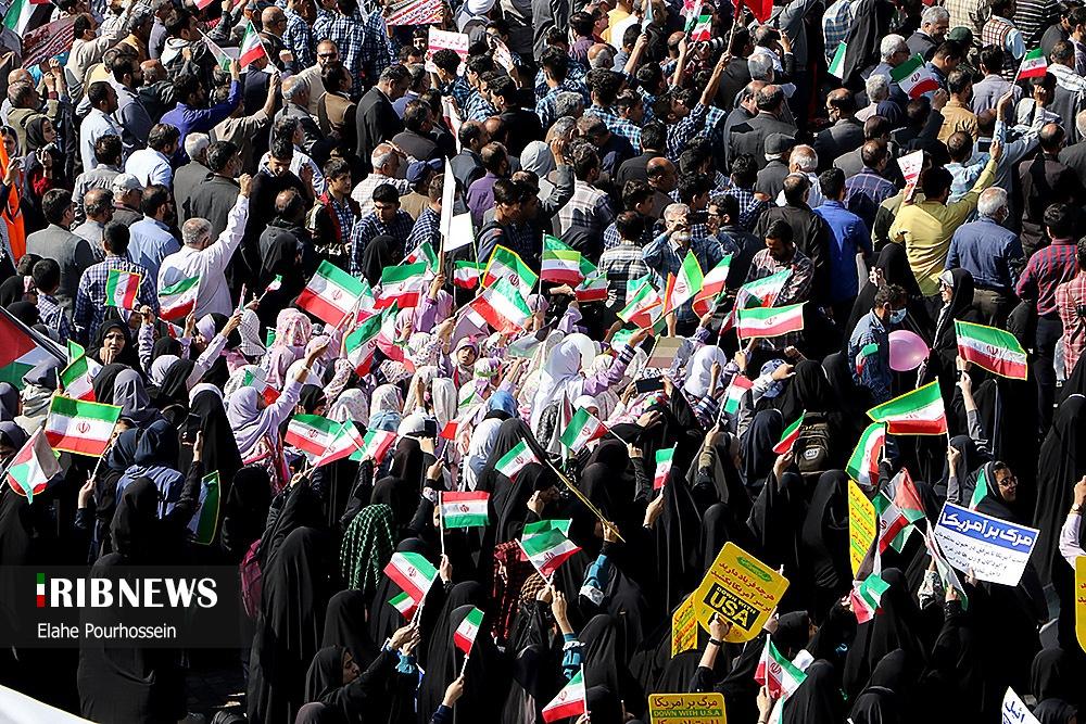 صبح امروز سیزدهم آبان ماه ۱۴۰۲، راهپیمایی روز ملی مبارزه با استکبار جهانی، و مراسم یومالله ۱۳ آبان، با حضور مردم و دانشآموزان و با شعار محوری «نظم نو جهانی با نسل آرمانی» در شیراز و جزیره کیش و کاشان و سایر استانهای کشور برگزار شد. حاضران در راهپیمایی امروز، ضمن محکومیت جنایتهای رژیم غاصب صهیونیستی، با همدستی آمریکای جنایتکار، حمایت خود را از آرمانهای انقلاب اسلامی و گروههای مقاومت فلسطینی اعلام و همراهی و همدردی خویش با ملت مقاوم و مظلوم غزه را، اعلام مینمایند.