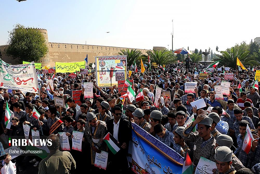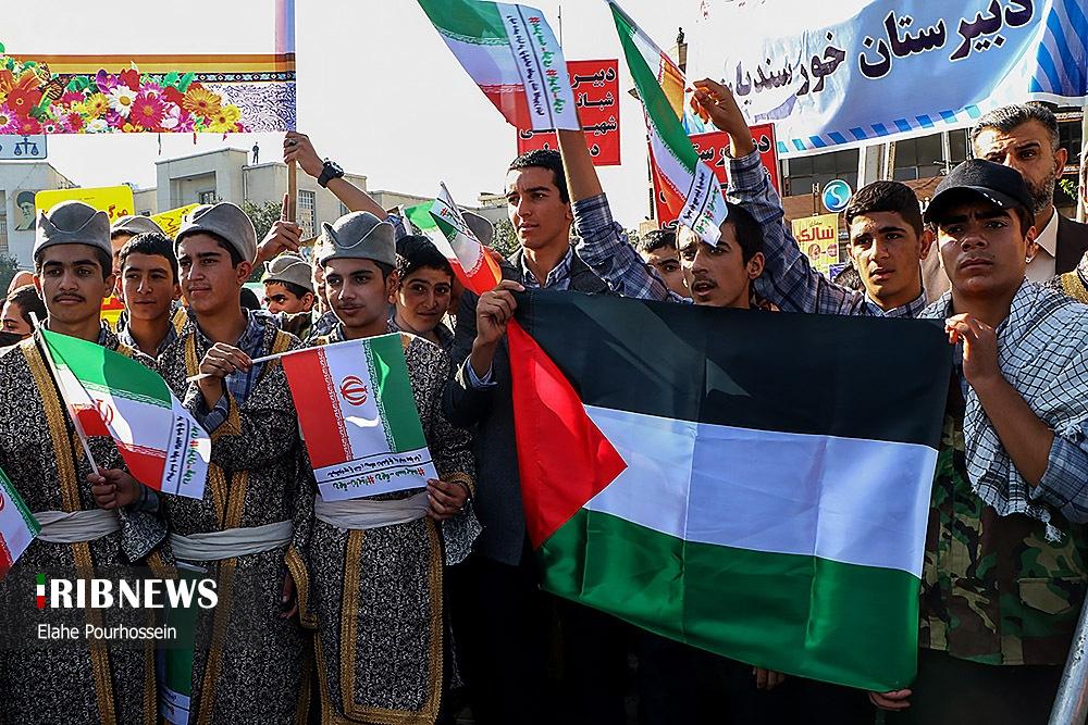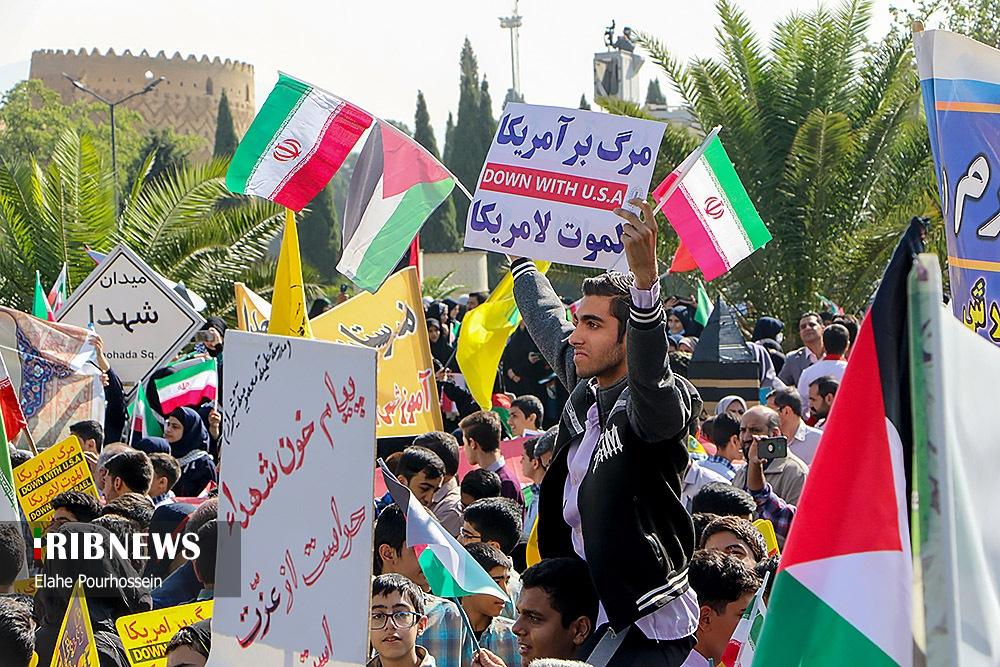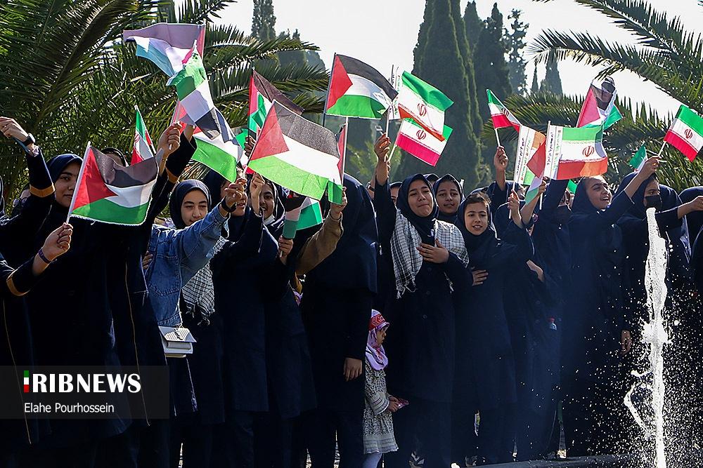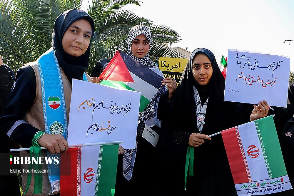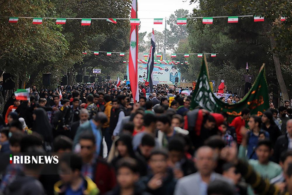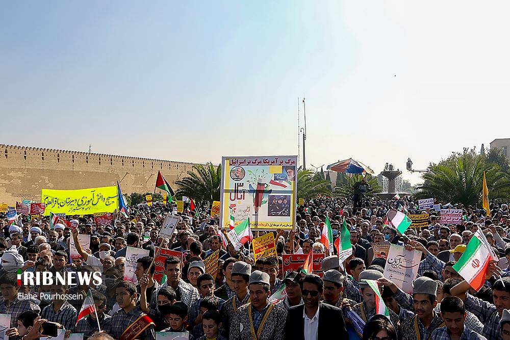 صبح امروز سیزدهم آبان ماه ۱۴۰۲، راهپیمایی روز ملی مبارزه با استکبار جهانی، و مراسم یومالله ۱۳ آبان، با حضور مردم و دانشآموزان و با شعار محوری «نظم نو جهانی با نسل آرمانی» در شیراز و جزیره کیش و کاشان و سایر استانهای کشور برگزار شد. حاضران در راهپیمایی امروز، ضمن محکومیت جنایتهای رژیم غاصب صهیونیستی، با همدستی آمریکای جنایتکار، حمایت خود را از آرمانهای انقلاب اسلامی و گروههای مقاومت فلسطینی اعلام و همراهی و همدردی خویش با ملت مقاوم و مظلوم غزه را، اعلام مینمایند.