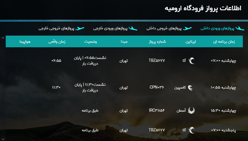 برنامه پروازهای فرودگاه بین المللی ارومیه در ۸ آذر را در این خبر پیگیری کنید.