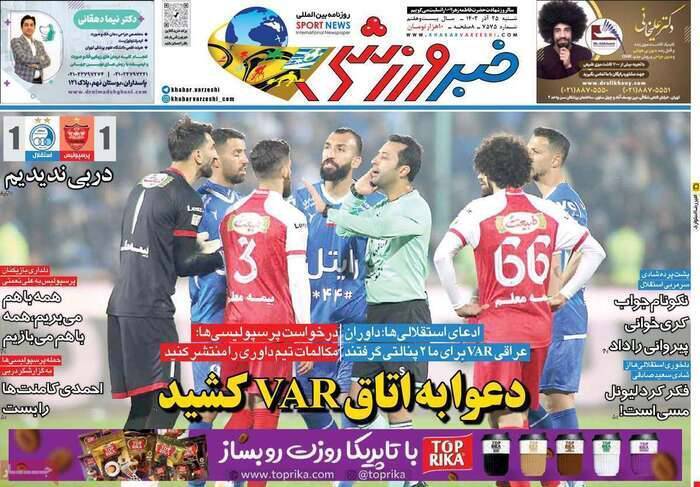 پیشخوان روزنامه‌های ورزشی شنبه ۲۵ آذر ۱۴۰۲