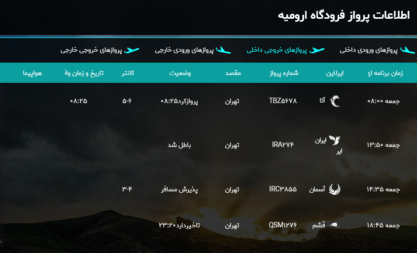 برنامه پروازهای ورودی و خروجی فرودگاه بین المللی ارومیه در نخستین روز از زمستان سال جاری را در این خبر ببینید.
