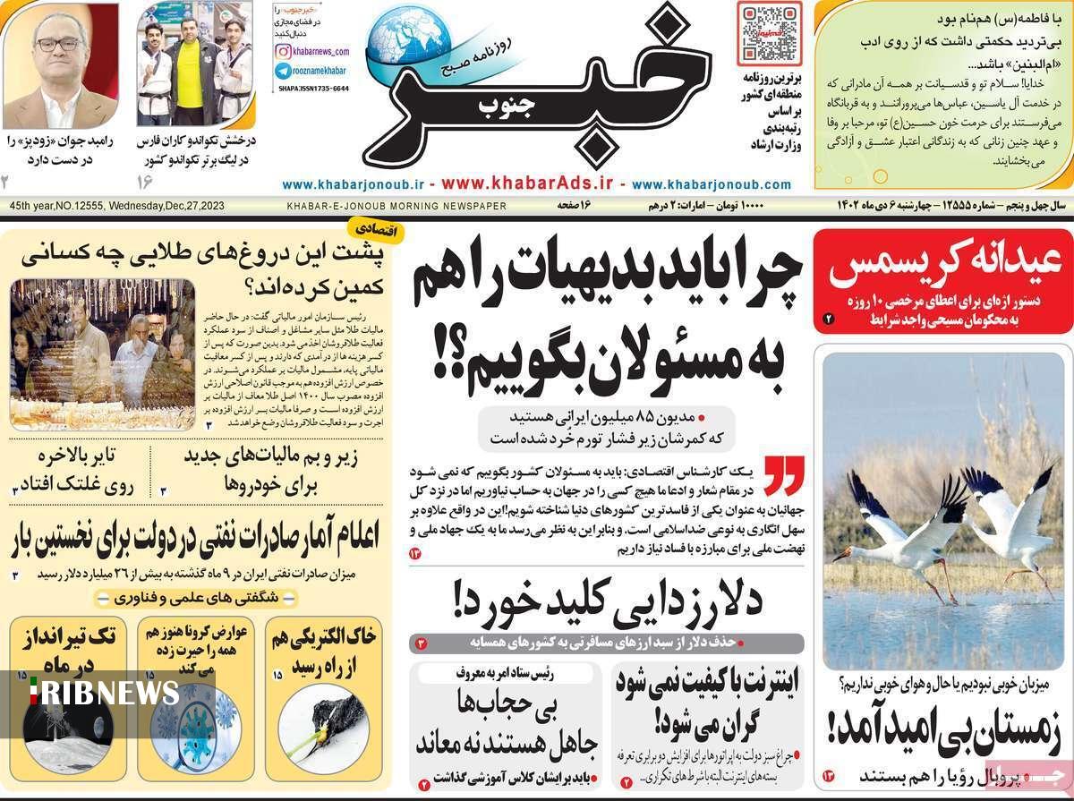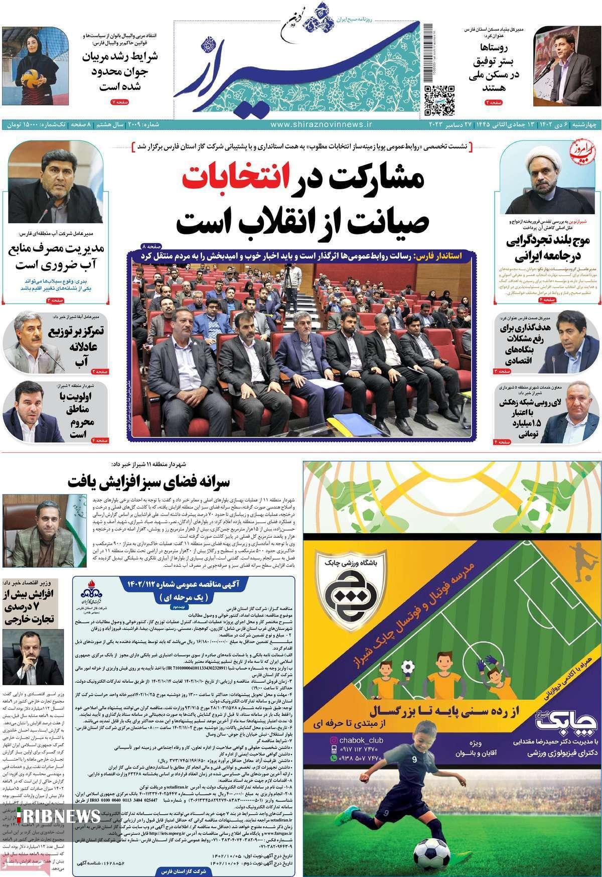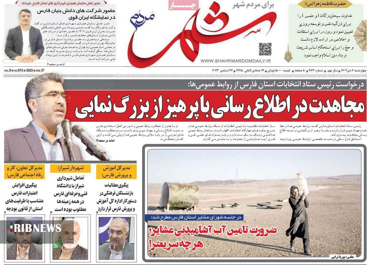 پیشخوان روزنامه‌های فارس چهارشنبه ۶ دی ۱۴۰۲