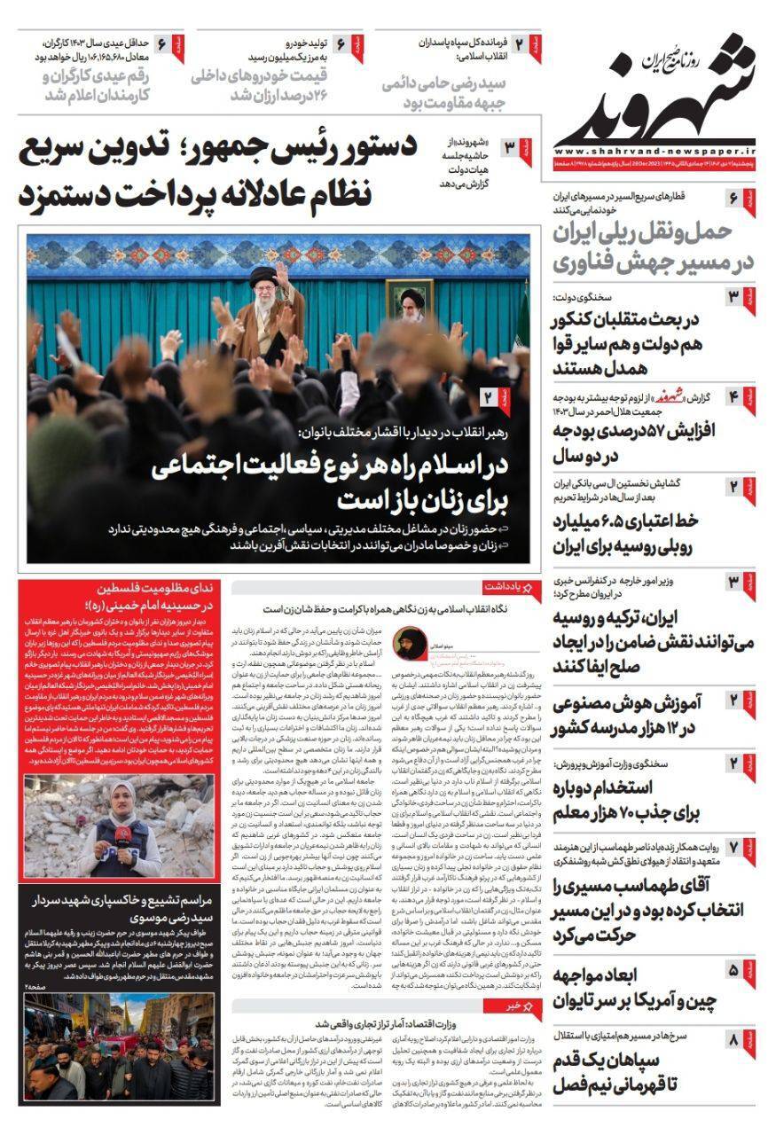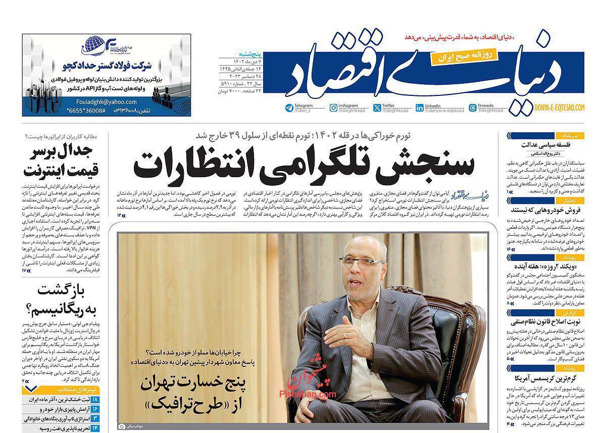 روزنامه‌های کشور پنجشنبه ۷ دی ۱۴۰۲