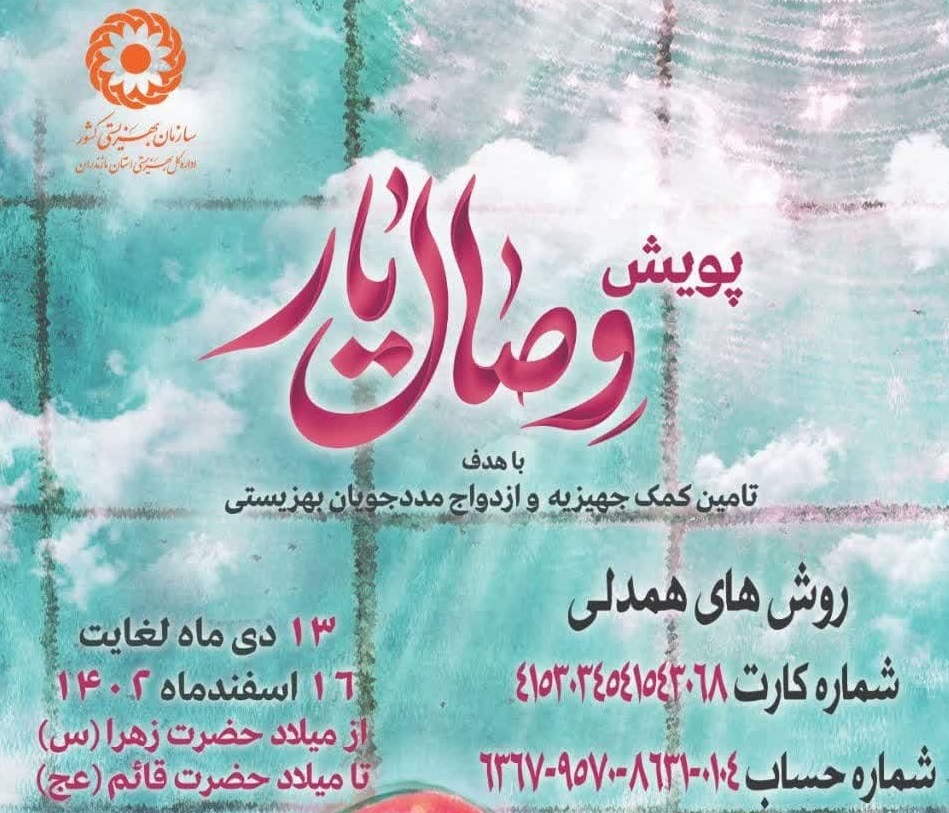 طرح ملی پویش وصال یار با هدف تأمین جهیزیه و تسهیل ازدواج برای مددجویان تحت پوشش بهزیستی اجرا میشود.