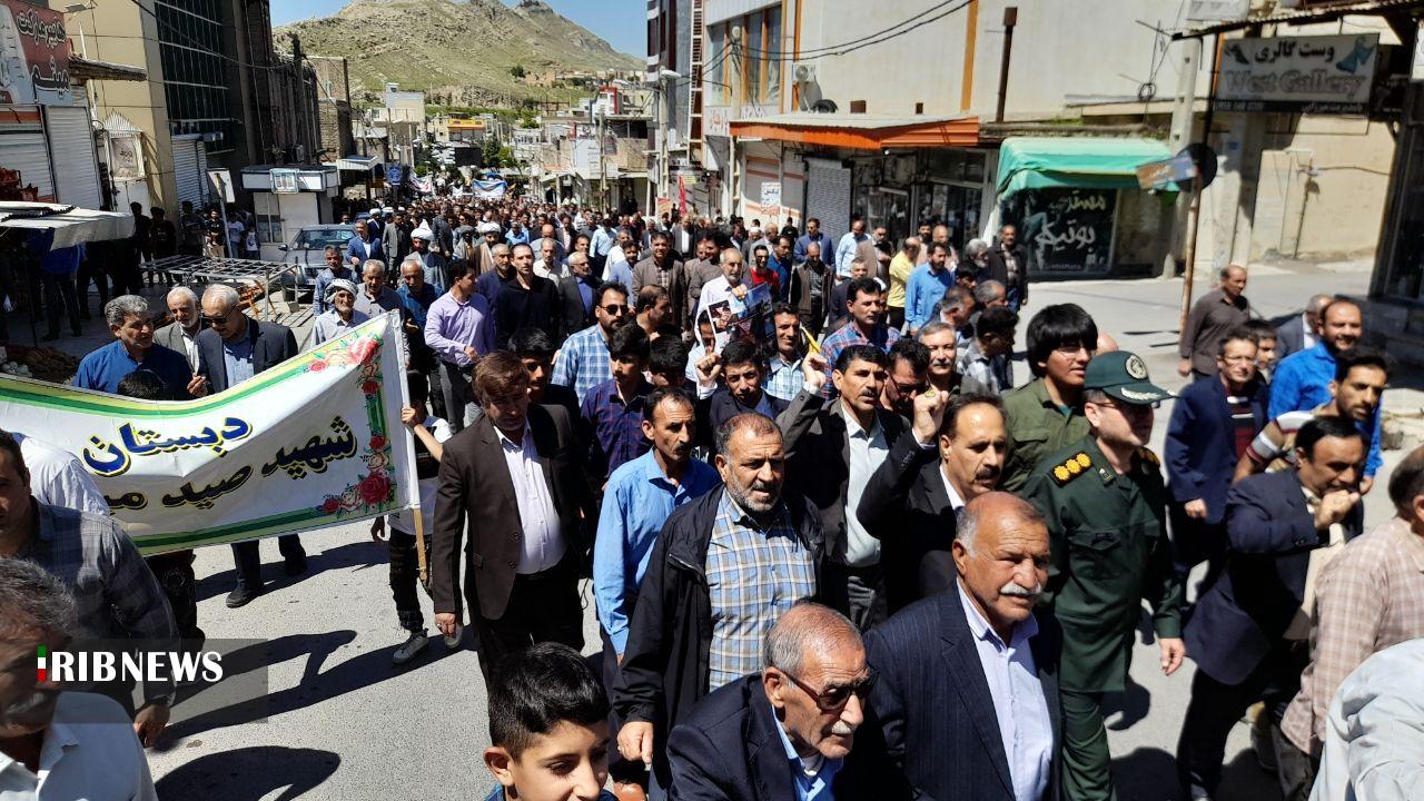 مردم استان ایلام امروز با حضور پرشور در راهپیمایی روز جهانی قدس از مردم فلسطین و غزه حمایت کردند.