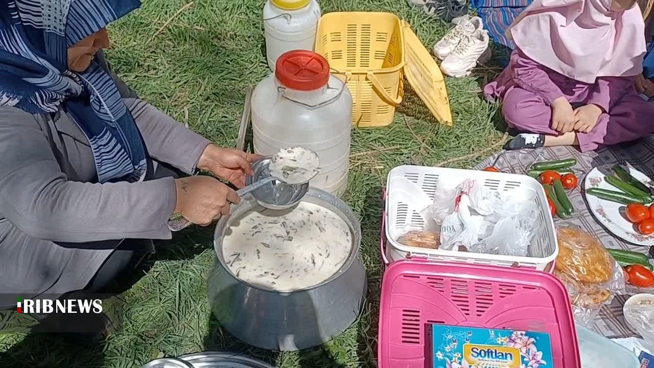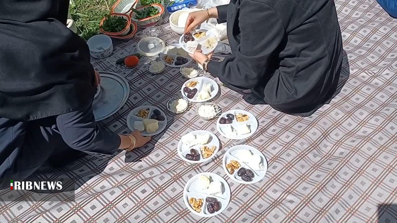 روستائیان با تهیه آش دوغ محلی، نان و پنیر و خرما، صبحانه ای سالم در دل طبیعت صرف کردند.