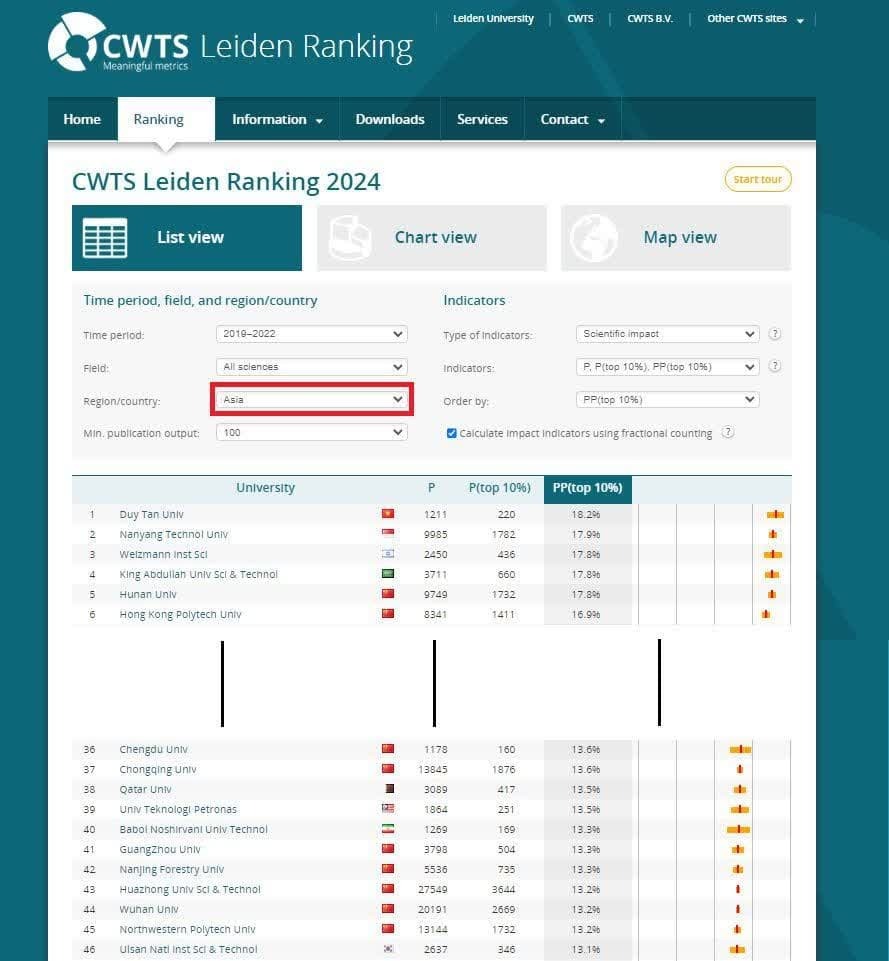 گفتنی است این رتبه بندی هر ساله توسط دانشگاه لایدن هلند منتشر میشود.