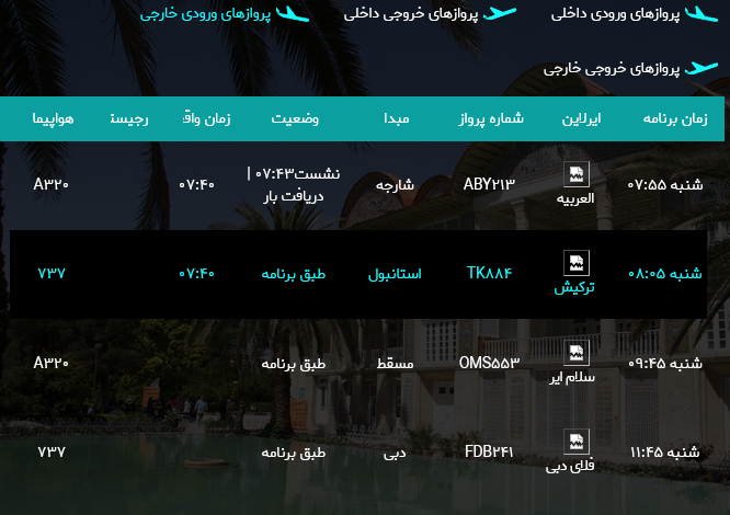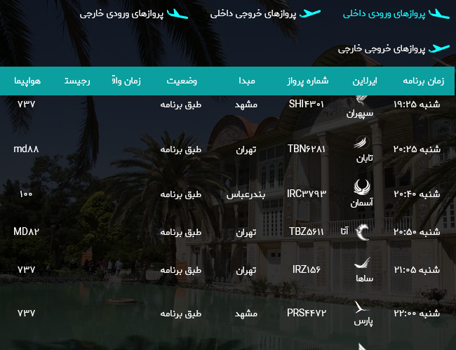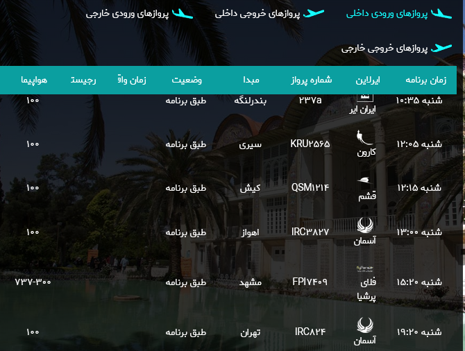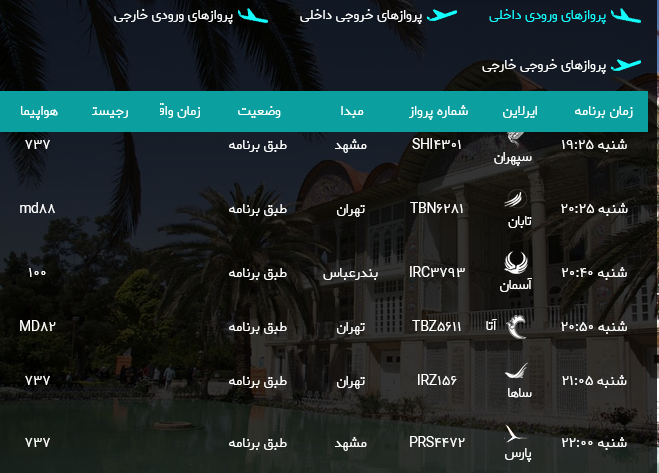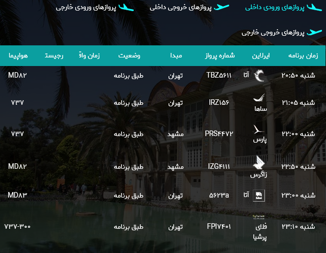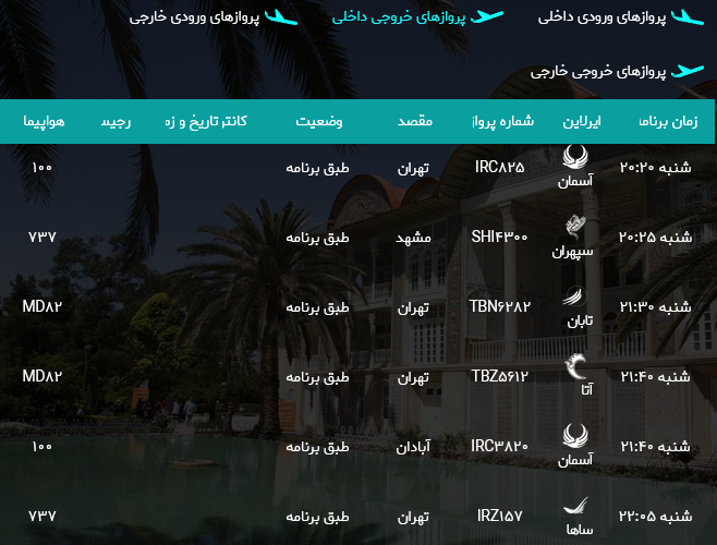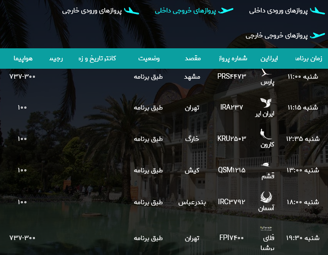 پرواز‌های فرودگاه شیراز؛شنبه هفدهم شهریور