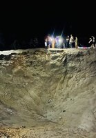 تصویر یکی از گودالهای عمیق به جا مانده از بمباران منطقه «مواصی» در «خان یونس»