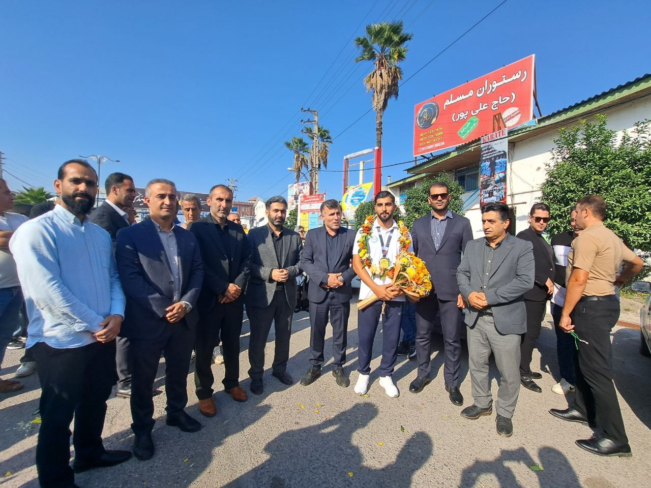 تنها ورزشکار مازندرانی عضو تیم ملی کبدی ساحلی که در مسابقات جهانی قهرمان شده بوه امروز با استقبال مردم و مسئولان به محمودآباد بازگشت.