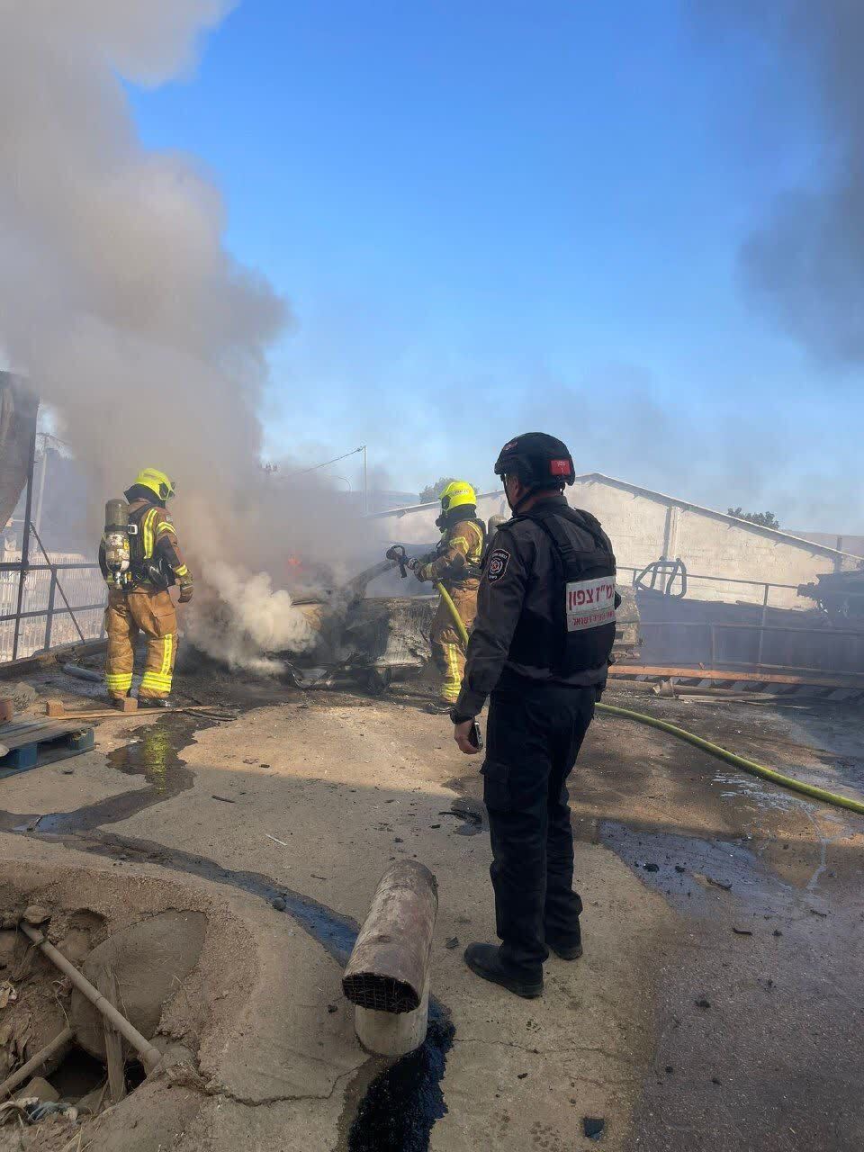 آسیب به منطقه صنعتی نعمان بین عکا و الکریوت، در نتیجه حملات موشکی لبنان