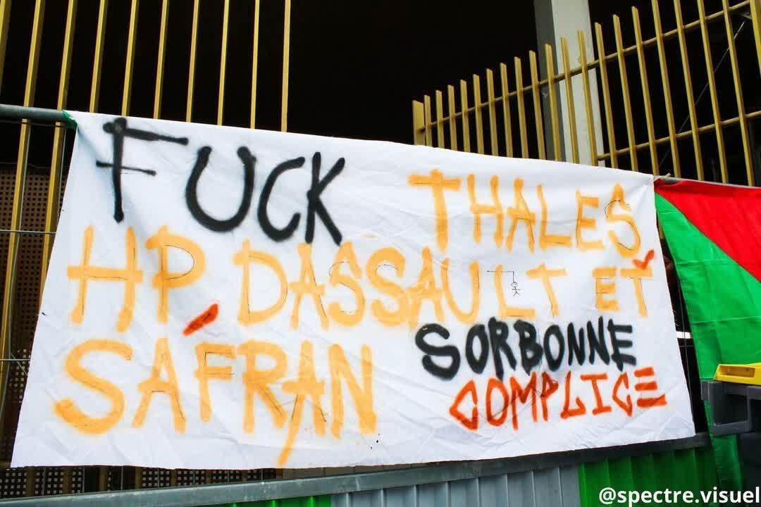دانشجویان فرانسوی در دانشگاه سوربن فرانسه پارچه نوشته حمایت از فلسطین نصب کردند.
