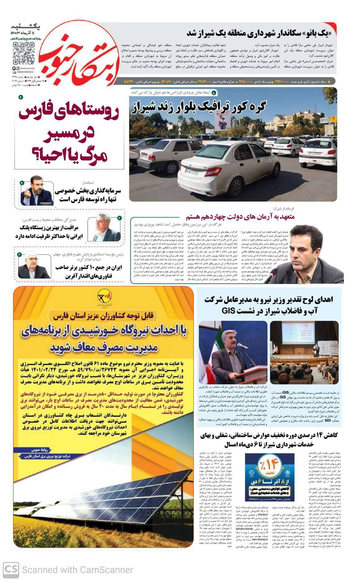 به گزارش خبرگزاری صدا و سیمای مرکز فارس،صفحه نخست برخی از روزنامههای یازدهم آذر فارس را اینجا بخوانید.