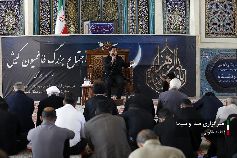 عزاداران شهادت فاطمه زهرا سلام‌الله‌علیها با حضور در مصلی کیش اشک ماتم ریختند و عزاداری کردند.