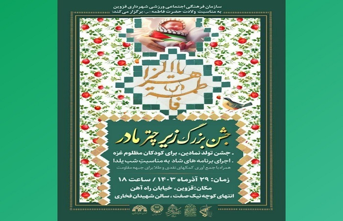 "جشن بزرگ زیر چتر مادر"در آستانه فرا رسیدن میلاد باسعادت حضرت فاطمه زهرا (س) و روز مادر در قزوین برگزار می‌شود.