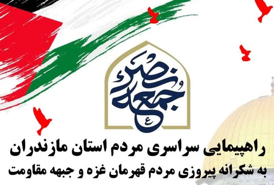 به گزارش خبرگزاری صدا و سیمای مازندران، شورای هماهنگی تبلیغات اسلامی استان مازندران اعلام کرده است که راهپیمایی سراسری مردم دیار علویان به مناسبت پیروزی مردم غزه و جبهه مقاومت امروز جمعه ۲۸ دی ۱۴۰۳ بعد از نماز عبادی سیاسی جمعه برگزار میشود. این راهپیمایی در تمامی مصلیهای سراسر استان و در مرکز استان از مصلی امام خمینی (ره) به سمت میدان ساعت برگزار خواهد شد.