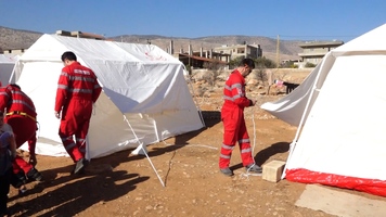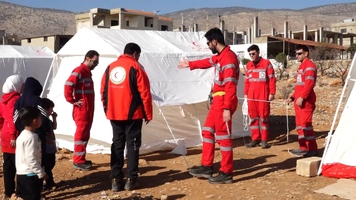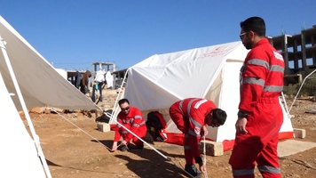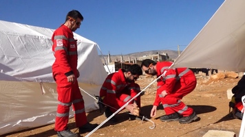 دو تیم اعزامی هلال احمر ایران، شبانهروز در تلاشاند تا اردوگاههای اسکان اضطراری را برای آوارگان ایجاد کنند. تاکنون پنج اردوگاه برای بیش از ۵۰۰ خانوار برپا شده و کار آمادهسازی اردوگاه ششم نیز در حال انجام است.