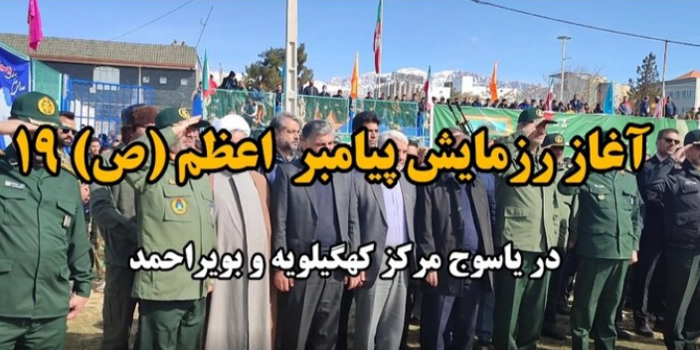 به گزارش خبرگزاری صدا و سیمای کهگیلویه و بویراحمد، رزمایش پیامبر اعظم ۱۹ از ساعت ۹ صبح امروز چهارشنبه هشتم اسفند در ورزشگاه تختی شهر یاسوج با حضور ۱۵ هزار بسیجی و در قالب ۷۱۴ پایگاه و ۶۸ حوزه مقاومت بسیج برگزار شد.