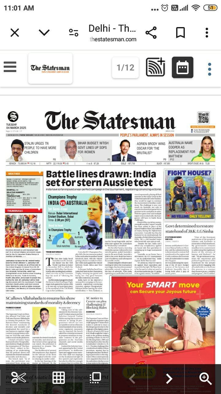 روزنامه انگلیسی زبان استیتسمن: