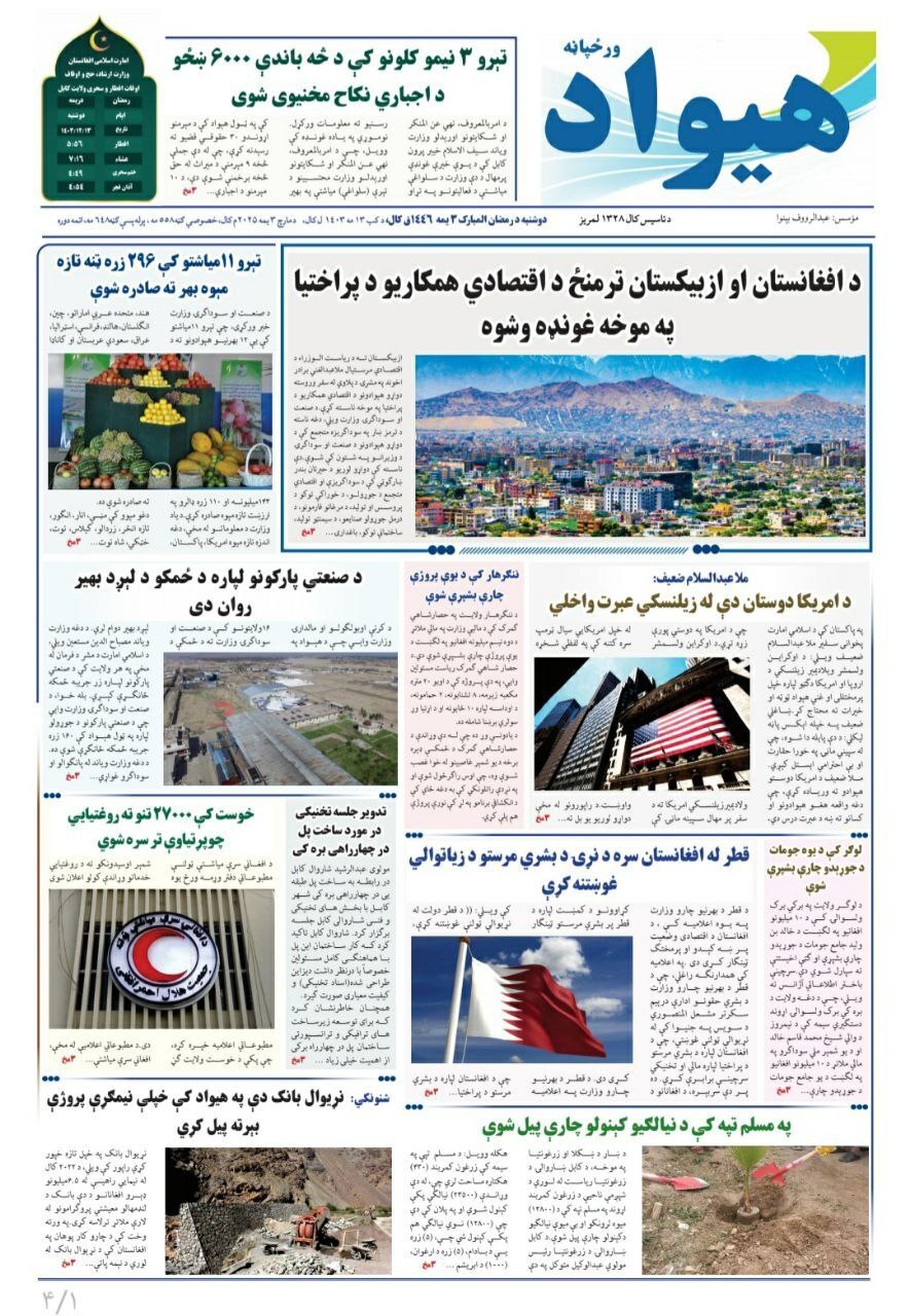 روزنامه دولتی «هیواد»: