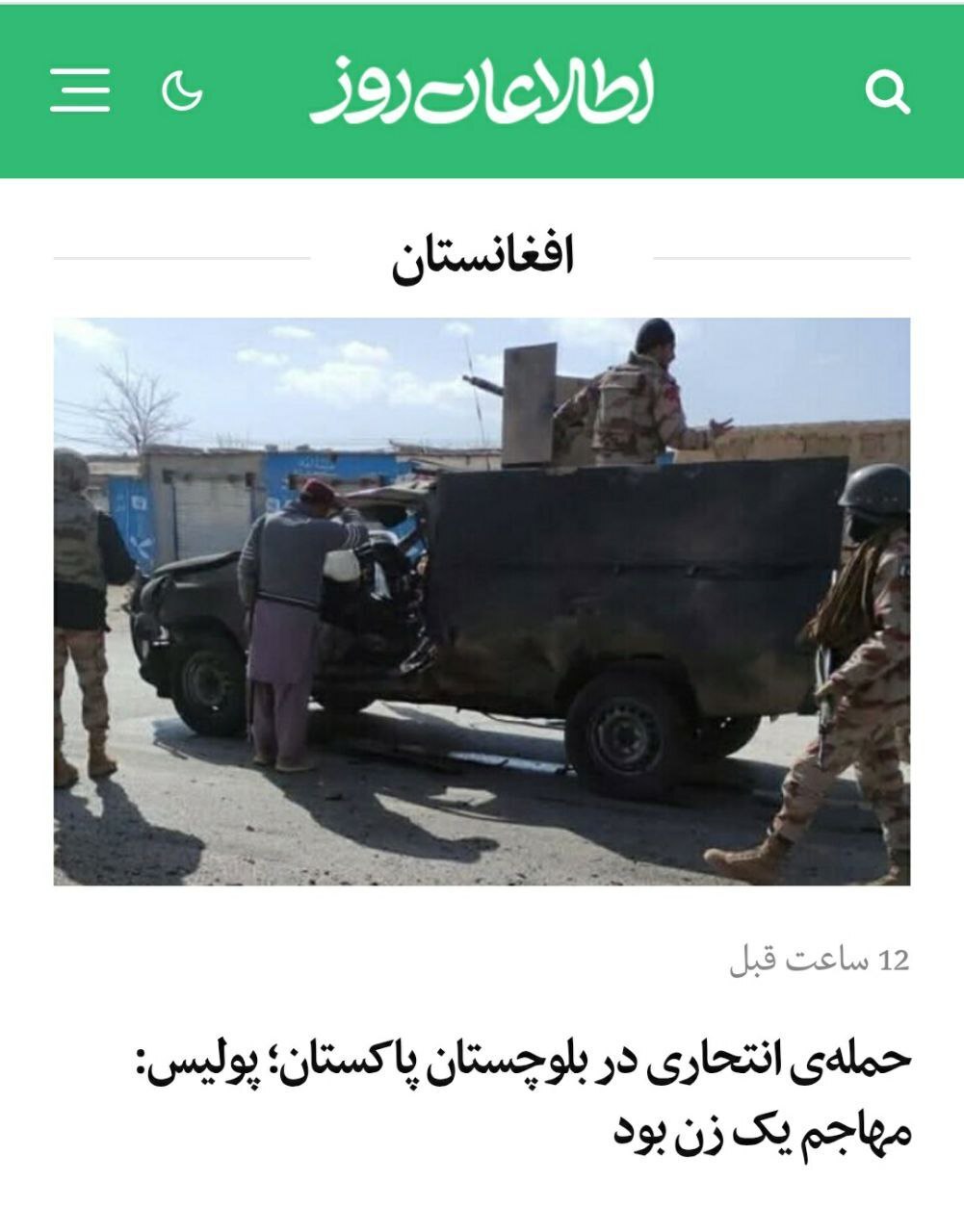 - حمله انتحاری در بلوچستان پاکستان، عامل حمله یک زن بود.