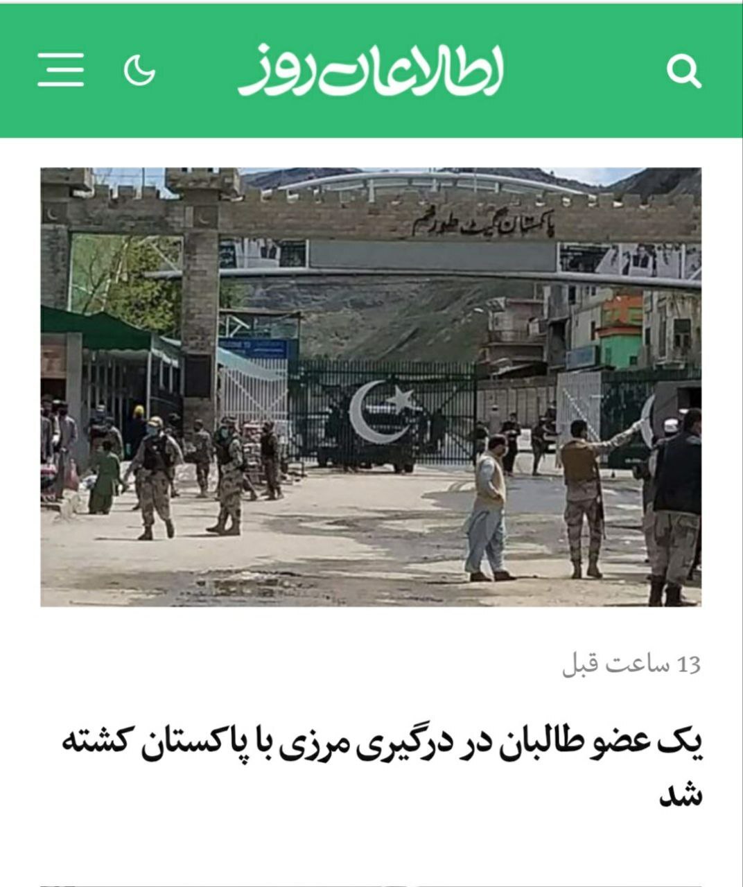 - یک عضو طالبان در درگیری مرزی با پاکستان کشته شد.