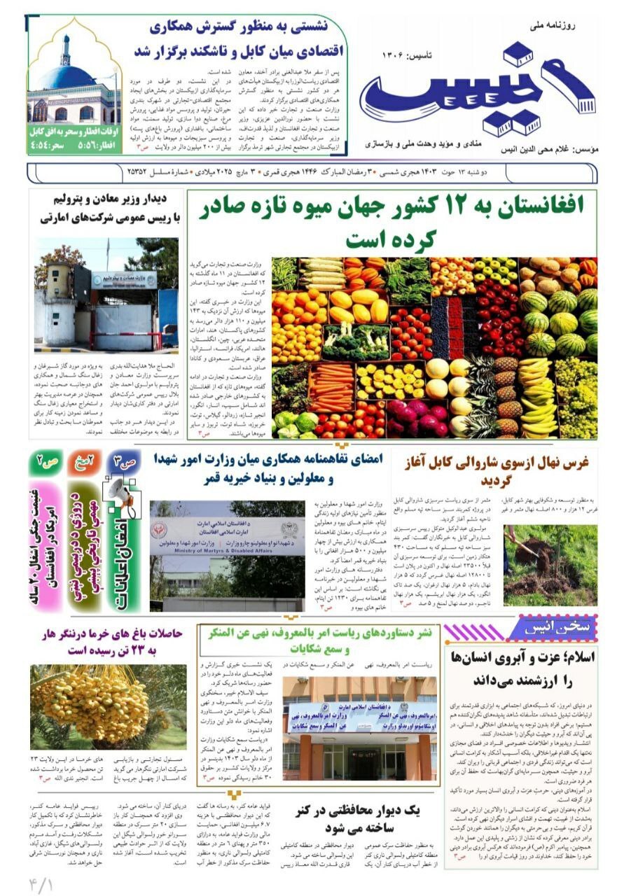 روزنامه دولتی «انیس»: