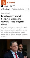 اسرائیل کاتز وزیر دفاع اسرائیل گفت که اسرائیل در ماههای آینده ساخت دیوار حائل به ارزش ۱.۴۴۵ میلیارد دلار را در امتداد مرز خود با اردن آغاز خواهد کرد.