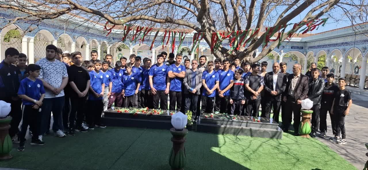 در بخش نخست، اعضای تیم ملی با حضور بر مزار مطهر دو شهید گمنام در اردوگاه کشوری شهدای هفتم تیر بسیج، به مقام شامخ این شهیدان ادای احترام کردند و با نثار شاخه‌های گل، یاد و خاطره آنان را گرامی داشتند.