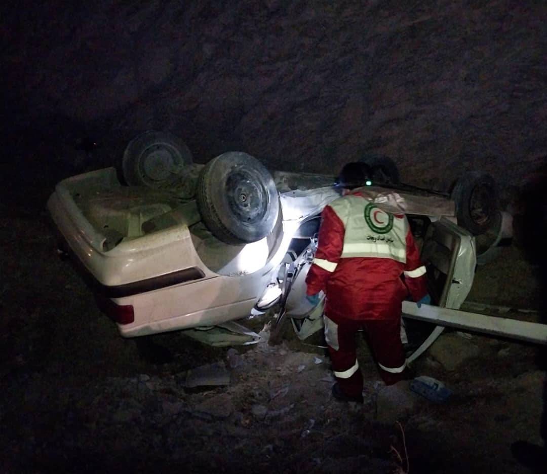 واژگونی پژو پارس در آزادراه شیراز_اصفهان یک کشته و یک مصدوم داشت.