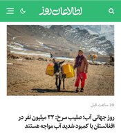 - روز جهانی آب، سازمان صلیب سرخ: سی و سه میلیون نفر در افغانستان با کمبود آب آشامیدنی مواجه هستند.