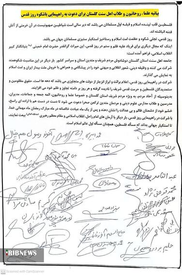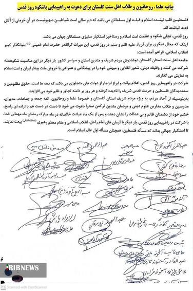 علما، روحانیان و طلاب اهل سنت گلستان، با صدور بیانیه ایی مردم را برای حضور پرشکوه در راهپیمایی روز قدس دعوت کردند.