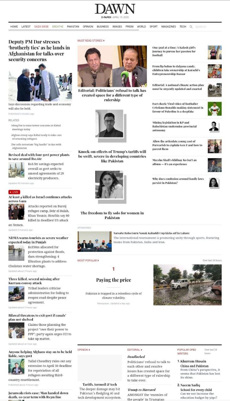 مهمترین عناوین روزنامهها و خبرگزاریهای پاکستان